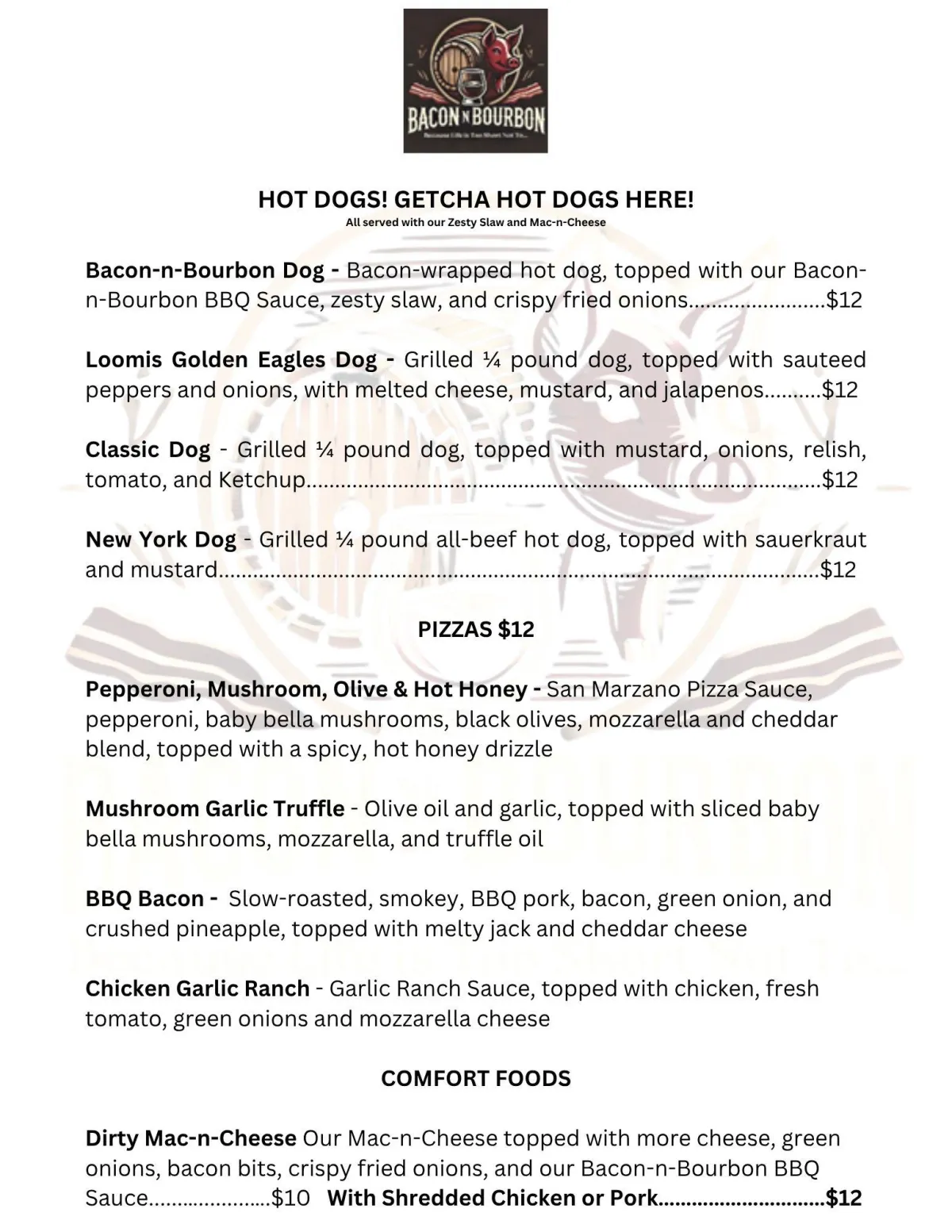 A meal in itself! A huge, fluffy baked potato loaded with butter, sour cream, melted cheese, crispy bacon, and green onions, with an optional topping of slow-smoked pulled pork or tender shredded chicken for the ultimate indulgence.